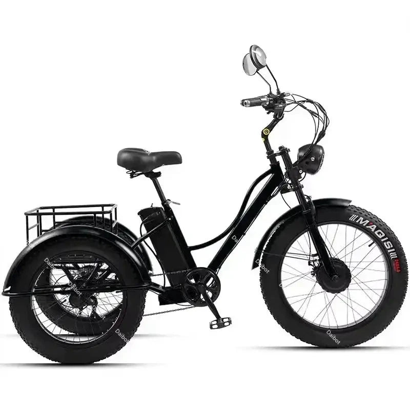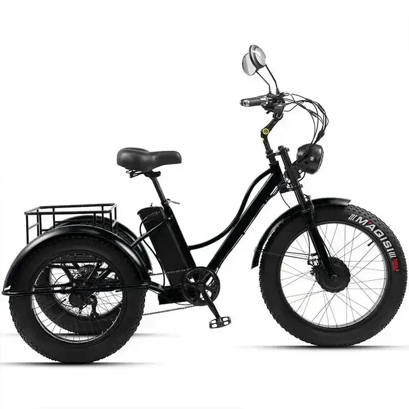All-Terrain Fat Tires: The "fatbike" designation means it has wider tires than a standard trike.This allows it to handle grass, gravel, and uneven pavement much better than thin-tired models.