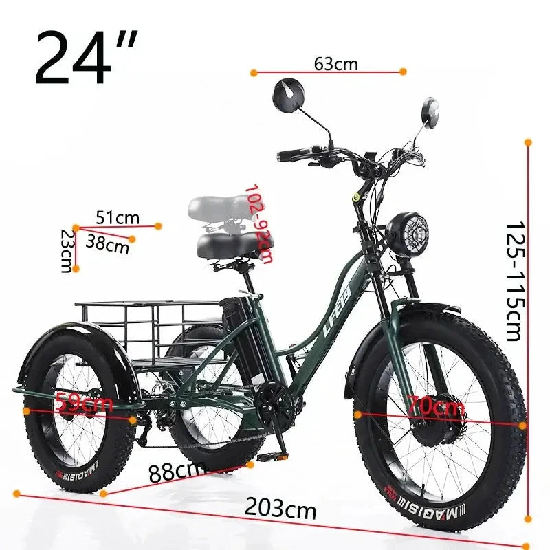 Three-Wheel Stability: The 24-inch wheel setup is the standard "sweet spot" for adult tricycles, providing a low center of gravity that makes it nearly impossible to tip over at low speeds—perfect for seniors or those with balance concerns.