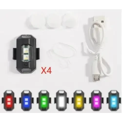 This versatile LED safety light enhances visibility for various applications. It features a compact, durable design with vibrant, multi-color illumination options, including white, red, green, blue, yellow, and purple. The integrated mounting system ensures secure attachment to motorcycles, bicycles, drones, or other vehicles, promoting increased safety during nighttime operations or in low-light conditions. Each light emits a powerful, bright glow, significantly improving presence on the road or in the air. These robust LED lights are engineered for reliable performance and easy installation, providing essential added visibility and peace of mind.