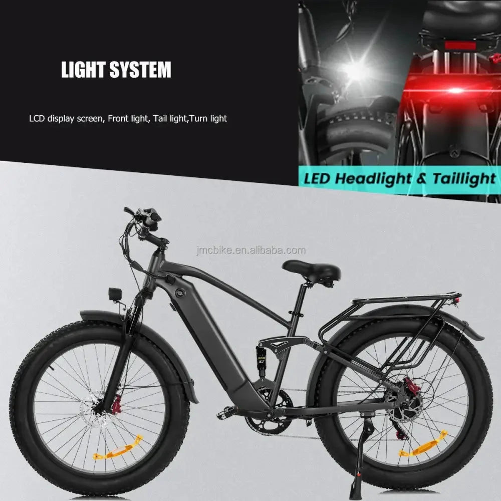 High Visibility: These bikes almost always come with a 48V high-intensity LED headlight and integrated brake lights for safety.