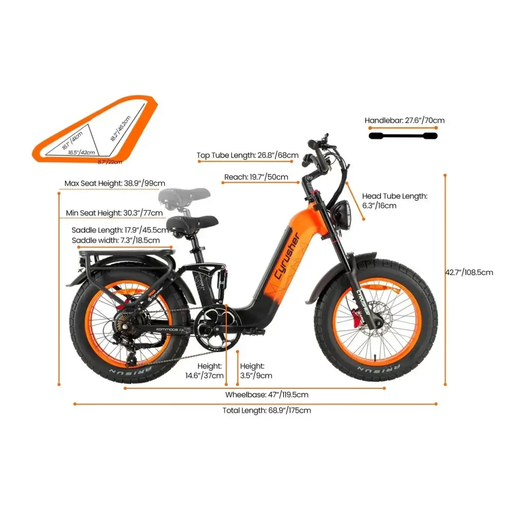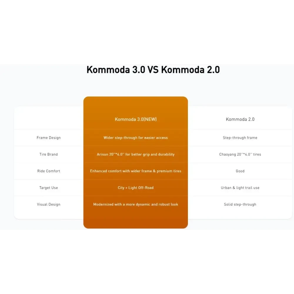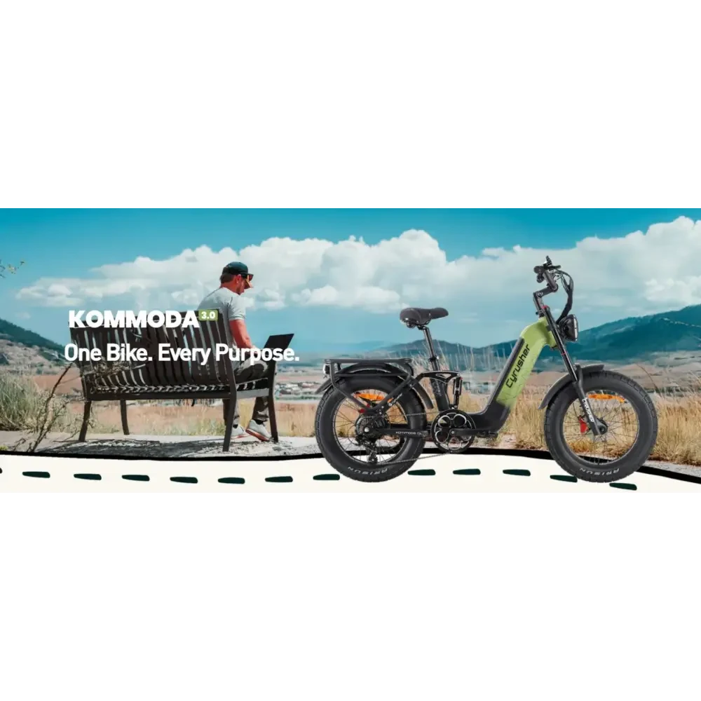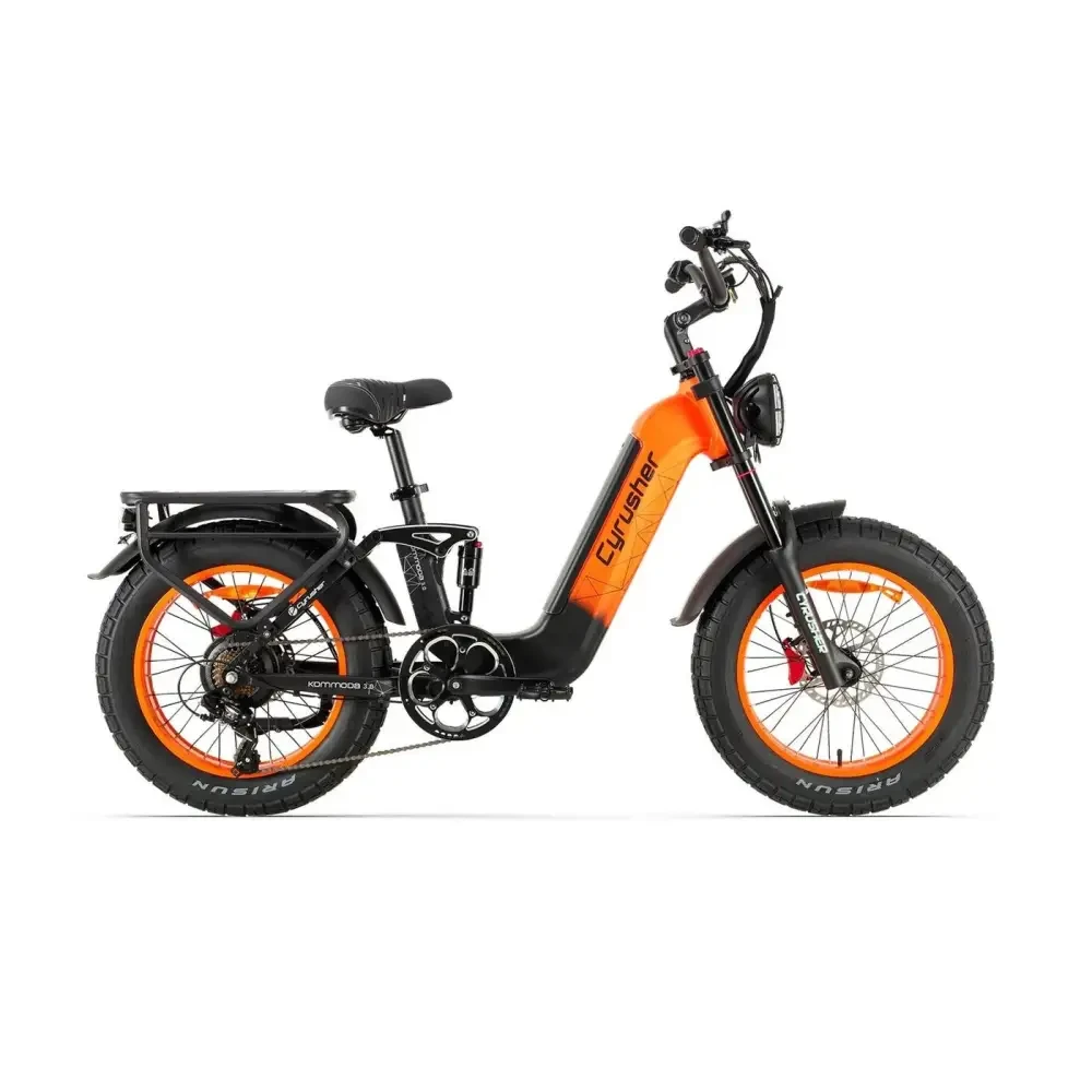 The Kommoda 3.0 is Cyrusher’s most versatile step-through e-bike yet—engineered for city streets, leisure rides, and everything in between. With upgraded 20x4.0” Arisun fat tires, a more robust frame, and enhanced comfort features, it’s built for riders of all sizes and skill levels. The powerful hub motor paired with a responsive torque sensor ensures smooth, intuitive power on demand. Whether you’re commuting, cruising, or carrying cargo, the Kommoda 3.0 delivers the comfort, confidence, and freedom to ride your way—every day.