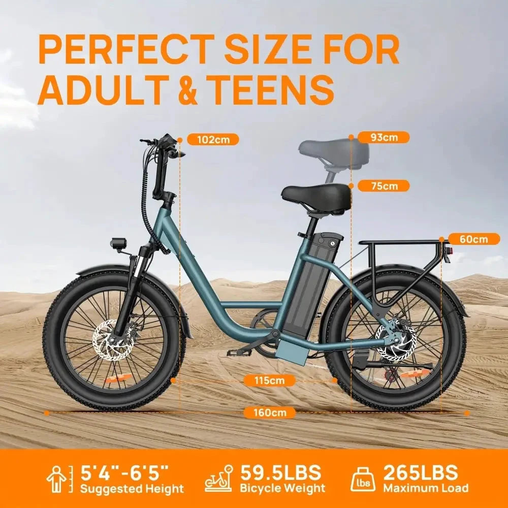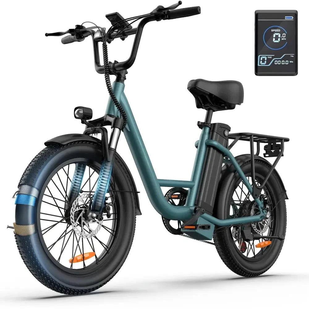 The URLIFE Green E-Bike with Shelves is a practical, urban-ready electric bike designed for riders 14 years and older. Its dual power mode, sturdy iron frame, and disc brakes provide a safe, reliable, and efficient ride, while the included shelves offer added convenience for carrying items.
