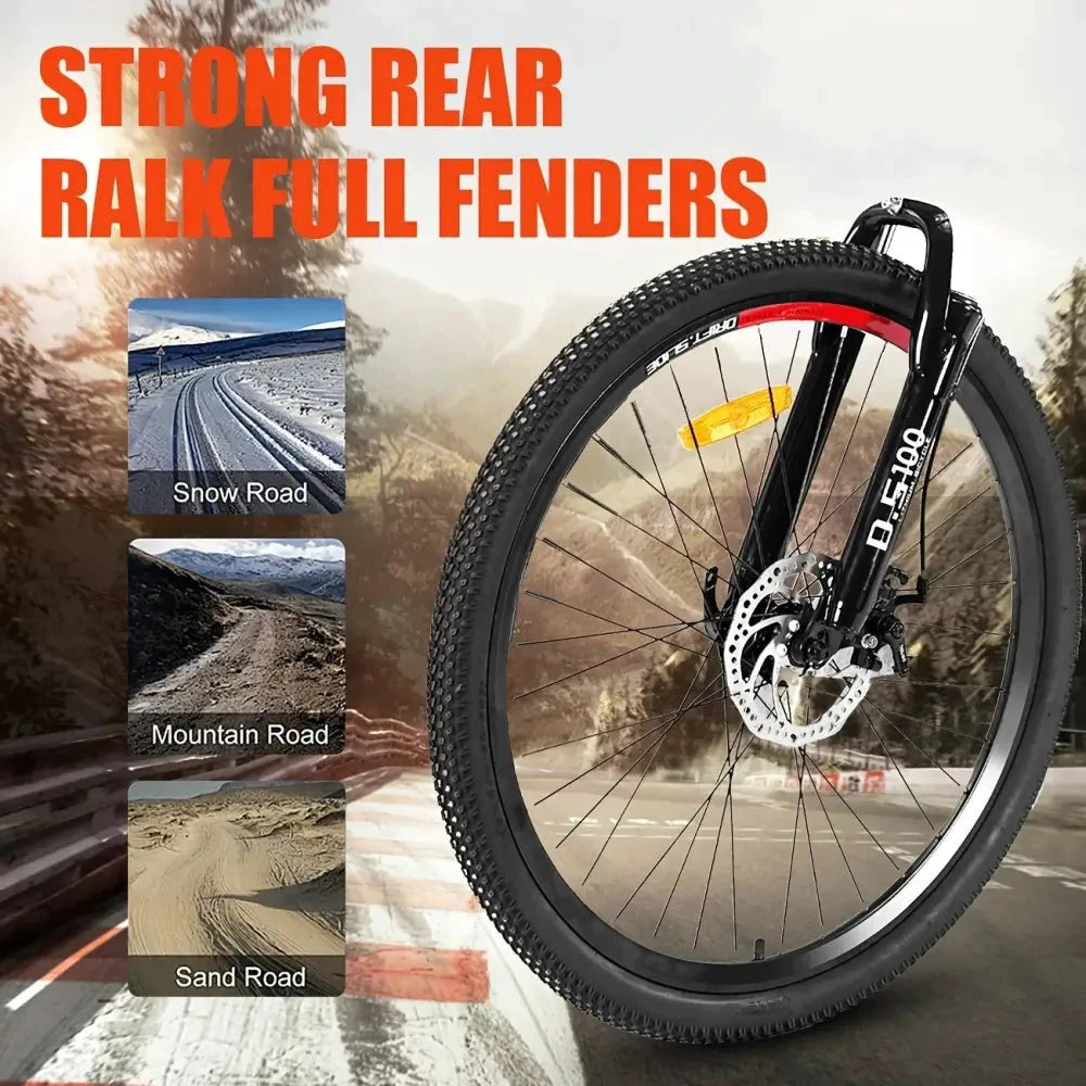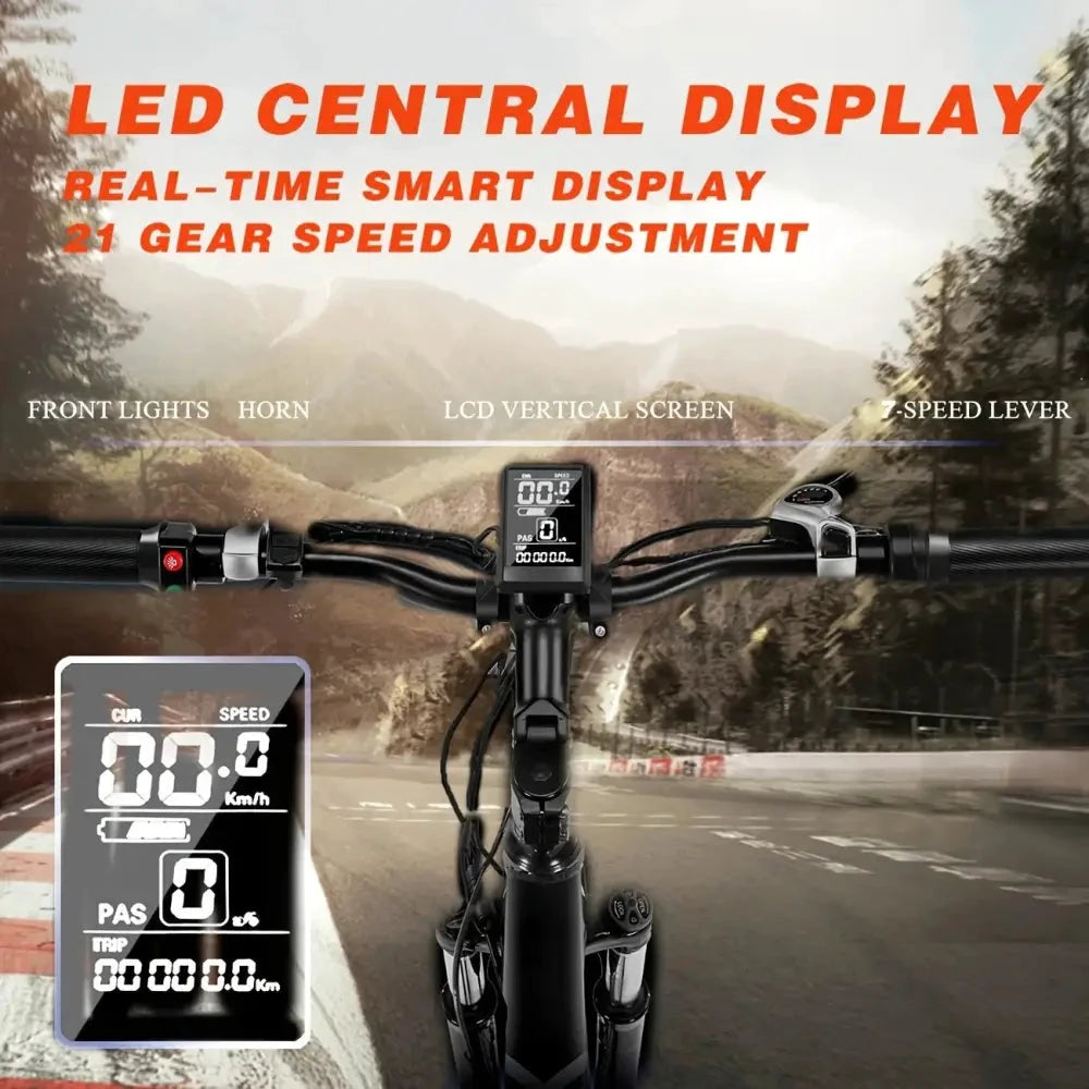Experience a new standard of cycling with the electric dirt bike palace 26" Electric Bike. Engineered for thrill-seekers and urban explorers alike, this premium e-bike features a robust 500W brushless motor and a reliable 36V 13A battery, delivering fast acceleration and exhilarating rides. The advanced 21-speed gear system offers seamless shifting, while the front fork suspension ensures a smooth journey across mountain paths, snow, or sand. Designed by electric dirt bike palace, every detail reflects sophistication, from the intelligent LED central display to the strong rear fenders built for all terrains. Enjoy ultimate fun, control, and confidence whether commuting or conquering off-road trails. Choose the bike that brings together fun, performance, and luxurious wheels—crafted for those who demand more from every ride.