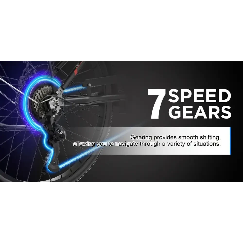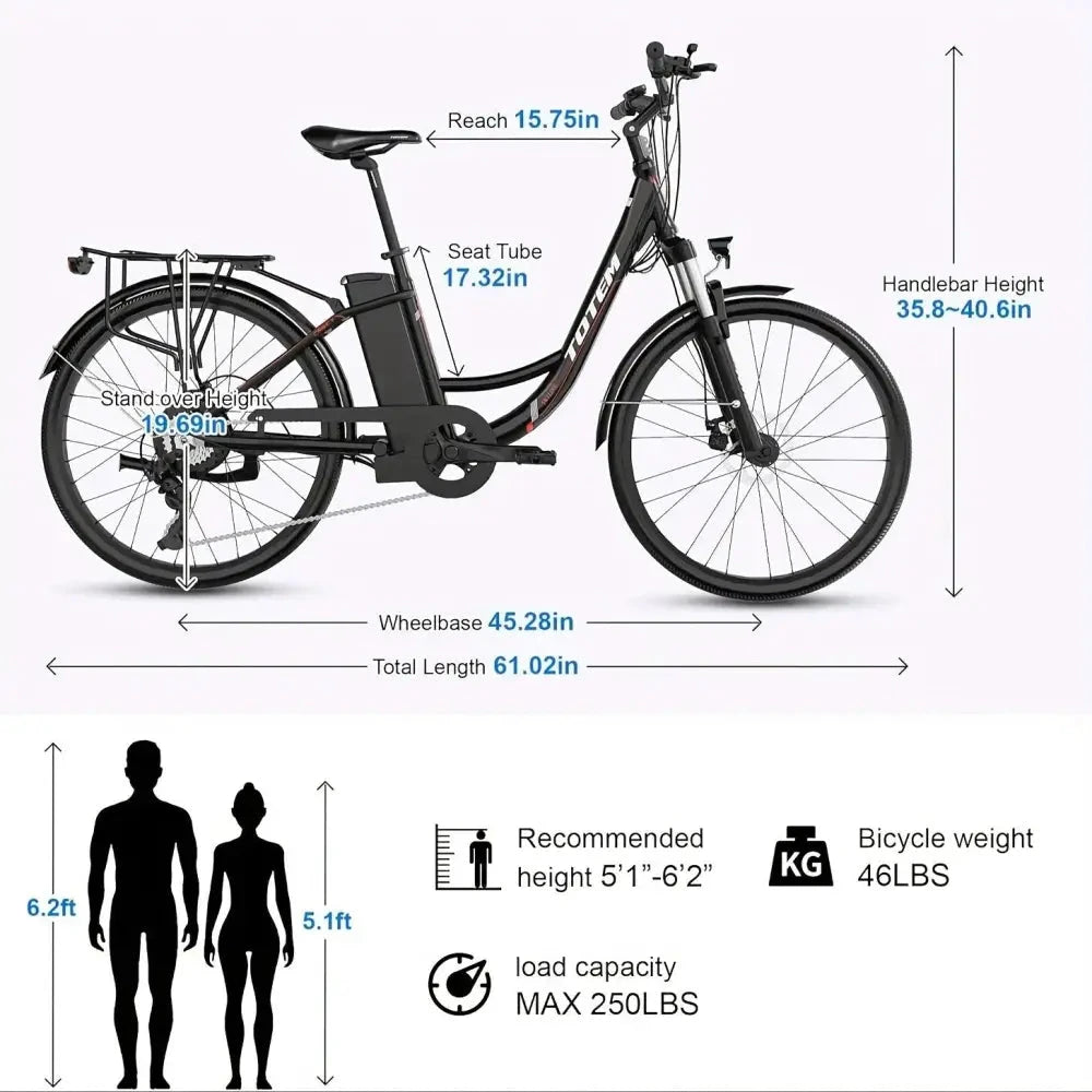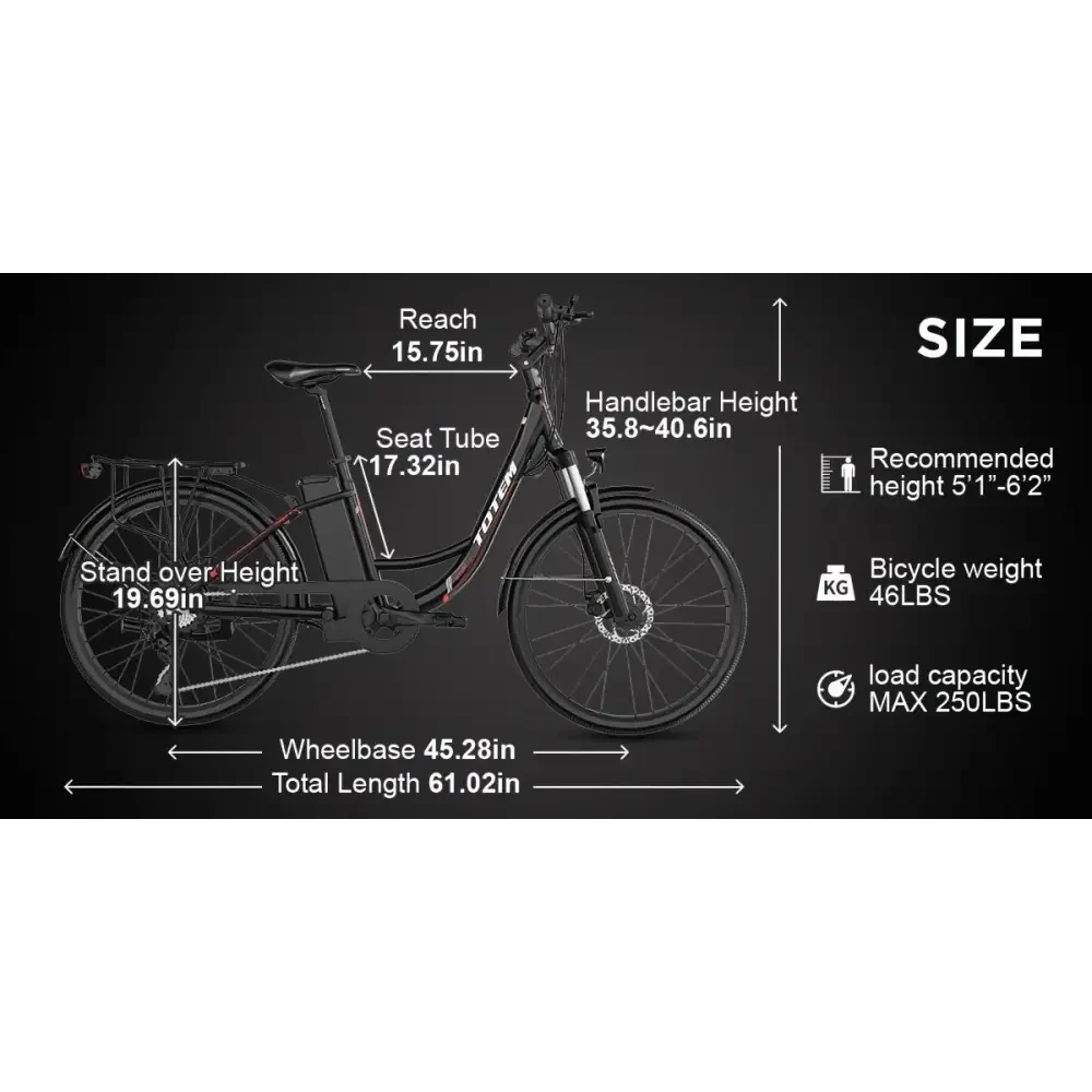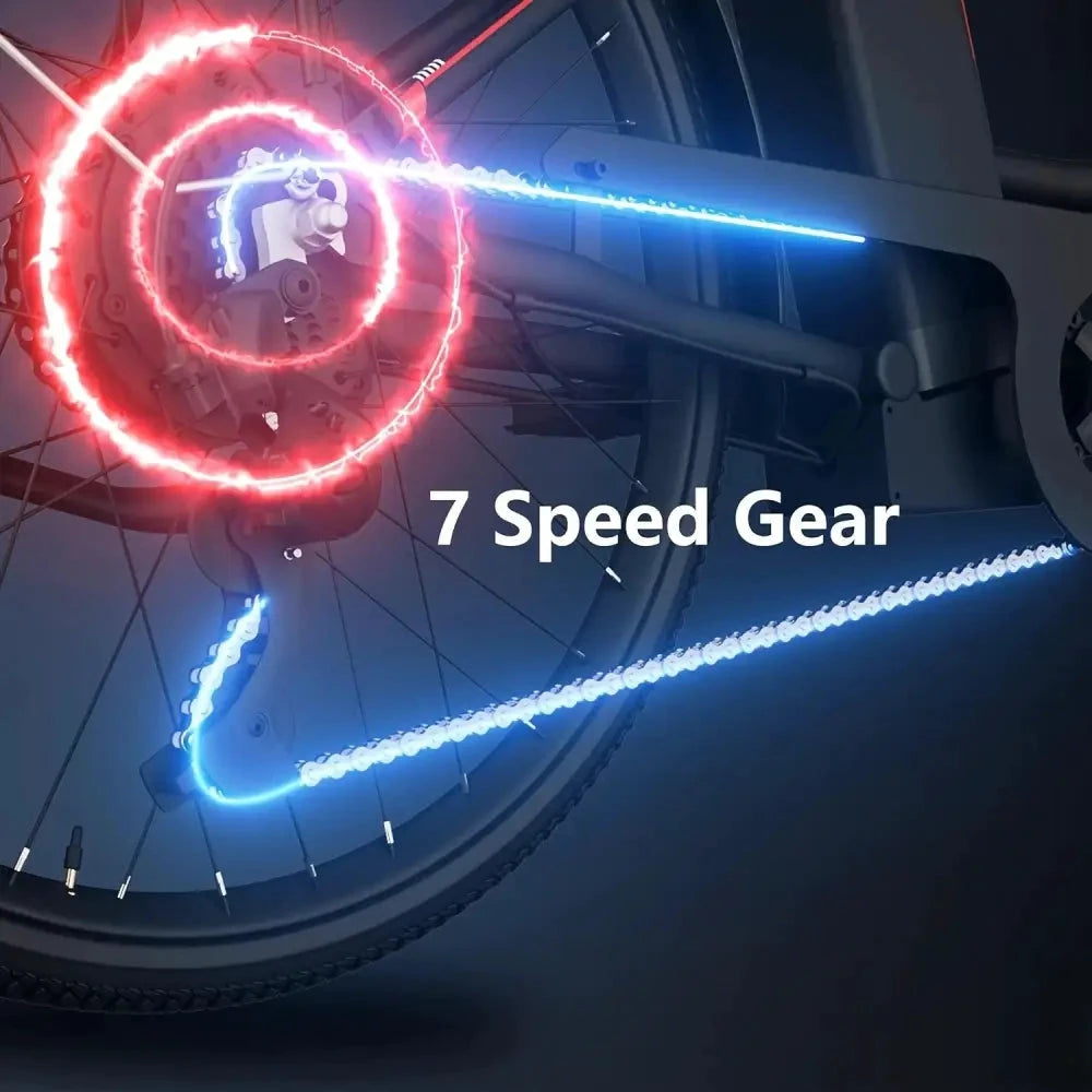 Experience luxury commuting with the Totem Skyline Electric Bike, designed by electric dirt bike palace. This premium e-bike features a powerful 750W (peak) motor and a robust 468Wh removable battery for extended, fun rides through the city. Its 26" wheels deliver a smooth, stable journey while the 7-speed gears empower you to conquer hills and urban streets with effortless speed.