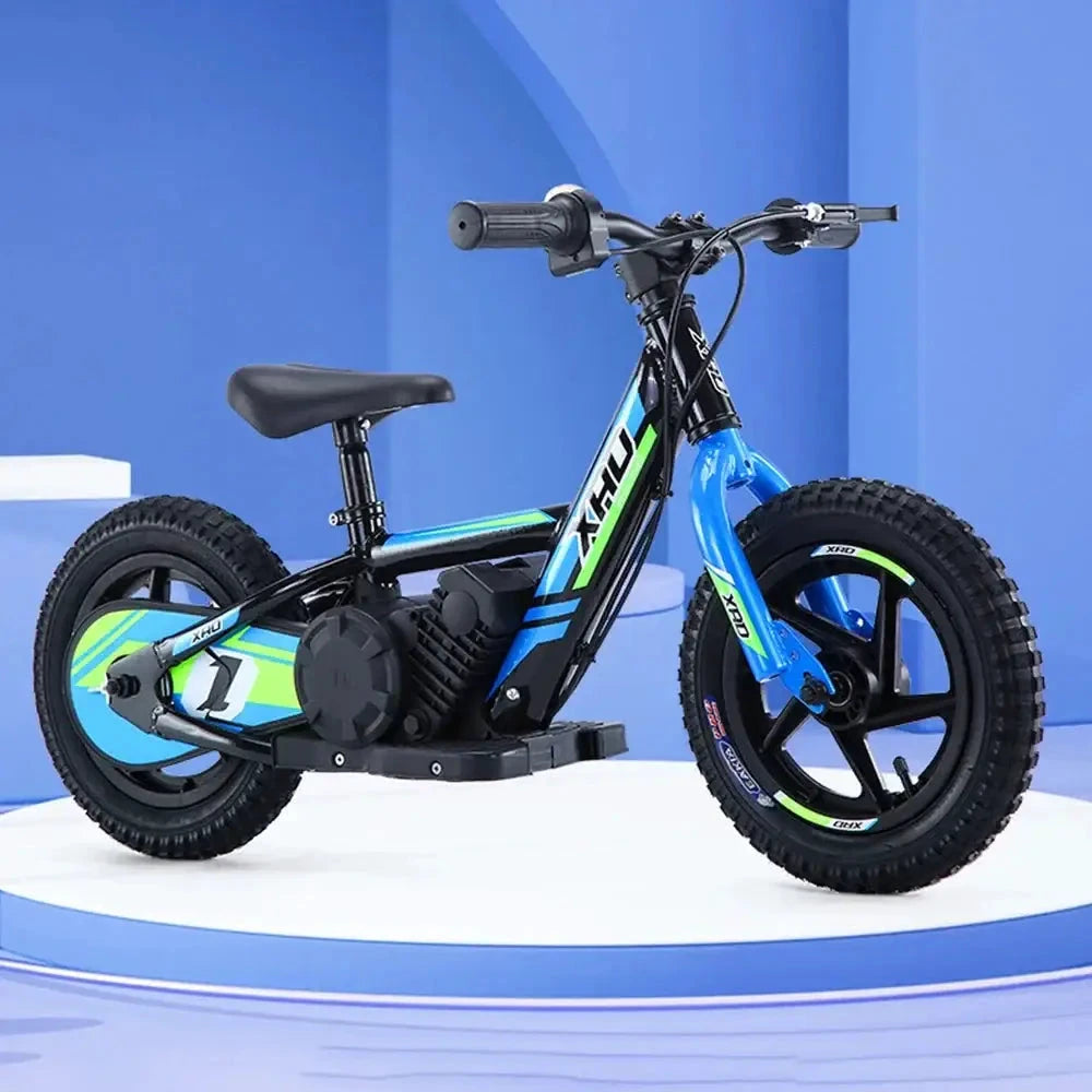 Compared to toy scooters this bike provides motor assist plus a metal frame for longer service life. Unlike adult e-bikes, it is tuned for child balance and lower speeds so your child can learn riding with more predictable handling.