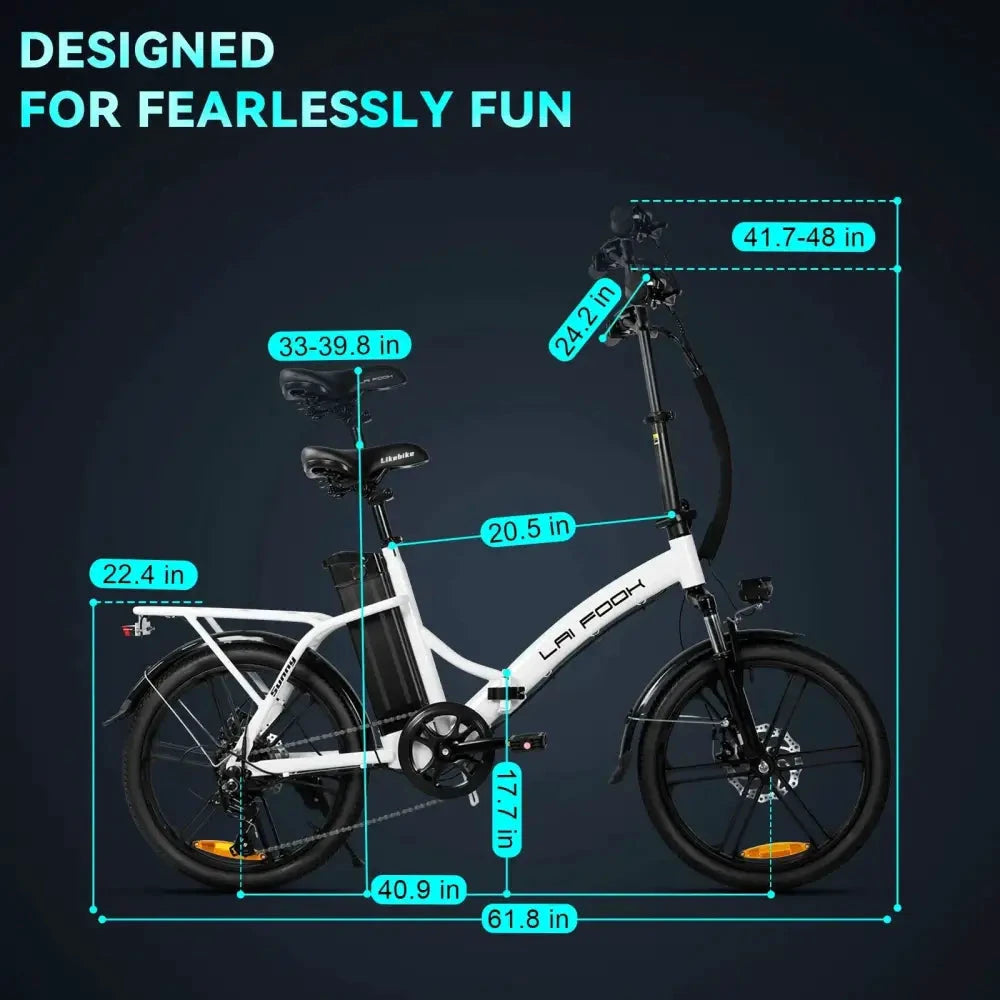 Meet the LAIFOOK Sunny, a high-performance electric bike built with a carbon fiber frame for superior lightness and durability. With its powerful motor options and compact 20-inch wheels, it offers an agile and responsive ride for urban explorers.