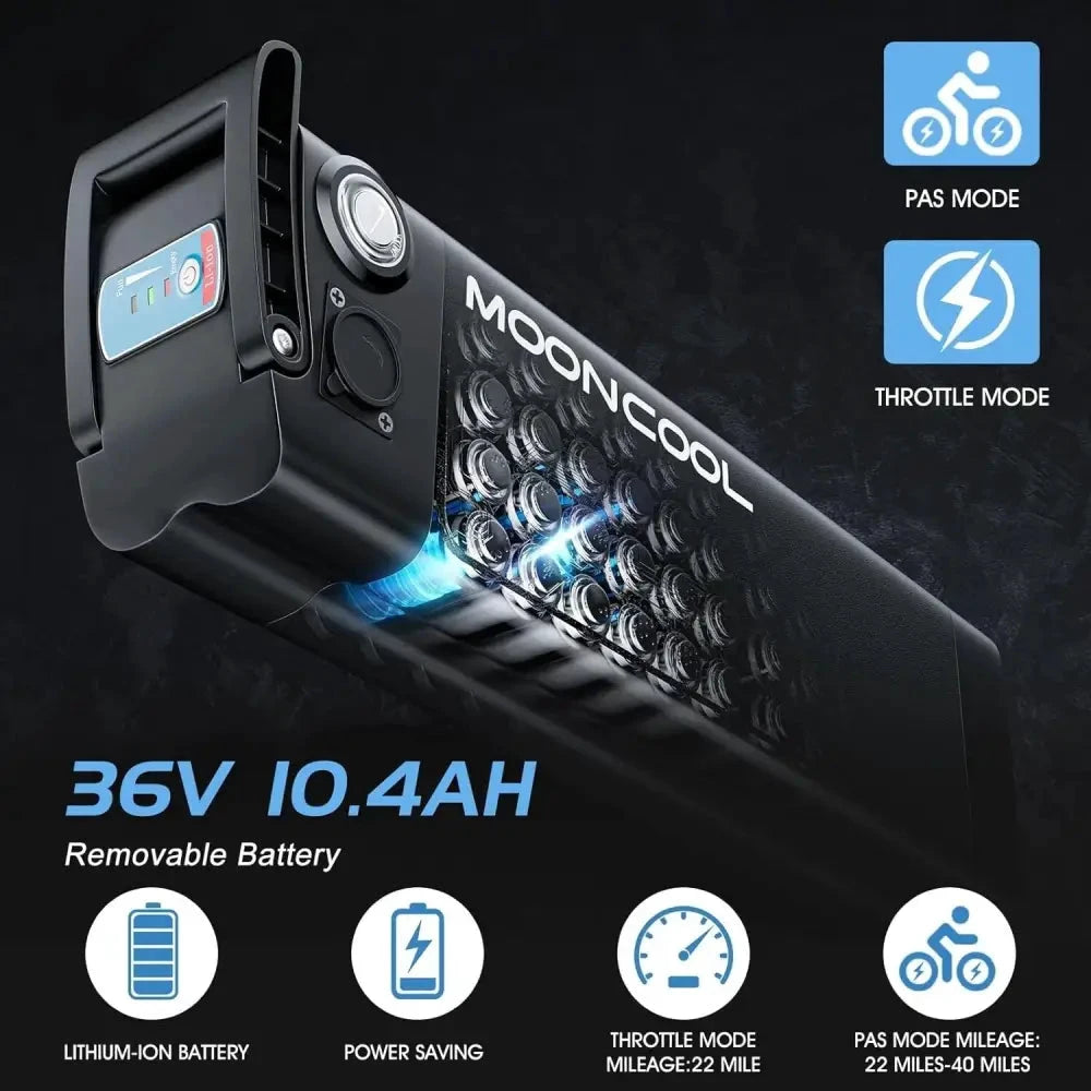MOONCOOL Electric Tricycle has three driving modes: electric & power assist & pedal. The different options electric trike will make you enjoy riding and exercising. The electric vehicle is equipped with a 350w motor, with a maximum speed of 15.5 mph. The detachable 36V 10.4Ah lithium battery can be fully charged within 6-8 hours. The electric tricycle bike's pure electric range is about 22-40 miles. The battery and bike are shipped separately, so you will receive two packages. The total vehicle weight of cruiser electric tricycle is about 81lbs, which suitable for 4'11'' to 5'11'' height and 350lbs weight