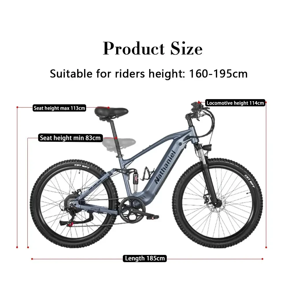 🏆 The Nathaniel SYR03 Advantage This e‑bike is built for riders who want more power, more comfort, and more range. With its long‑lasting lithium battery, advanced suspension, and premium braking system, the SYR03 delivers a riding experience that feels smooth, controlled, and exhilarating. Whether you're commuting or exploring, this bike is ready for anything.