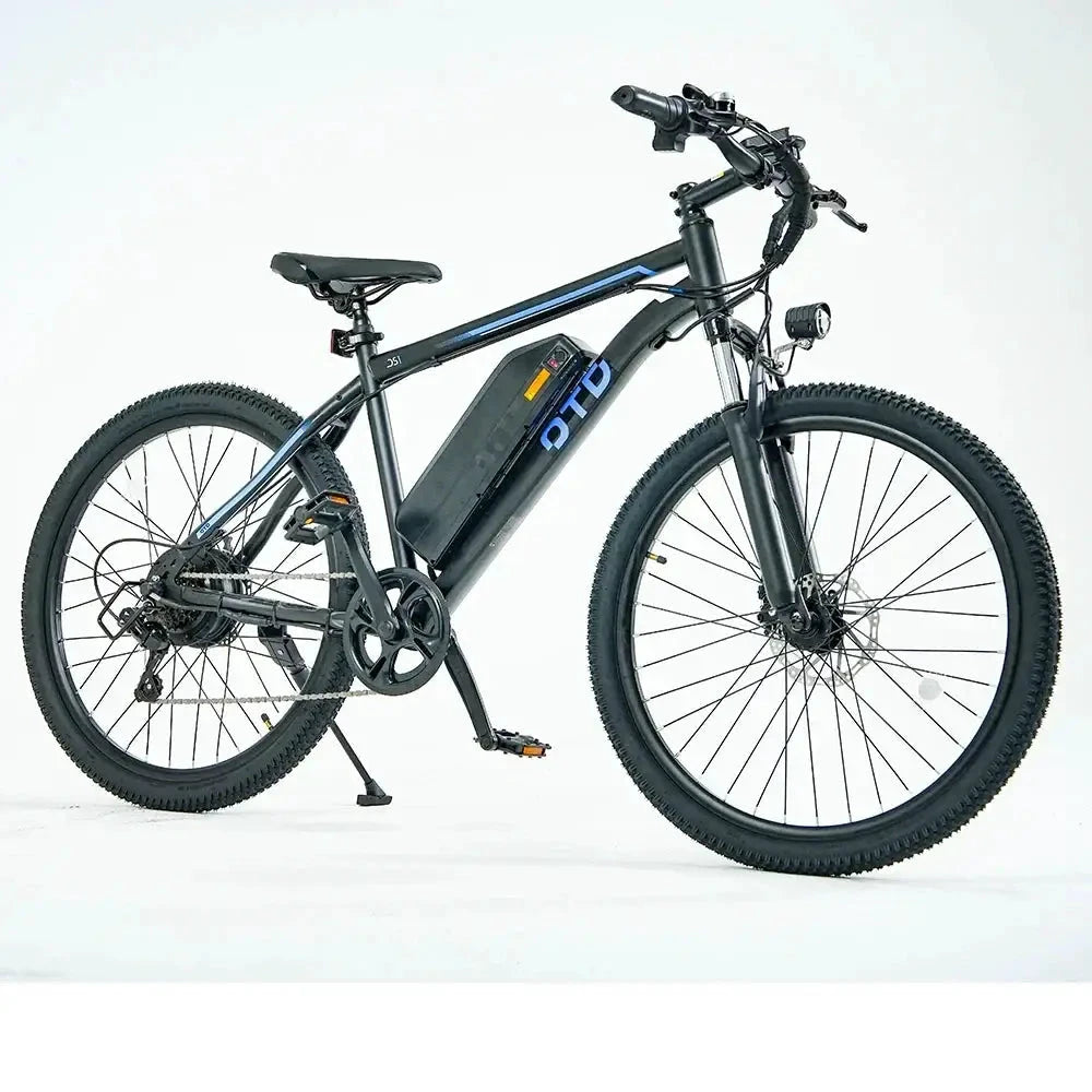 Commute with confidence on the OTD DS1. This premium electric city bike packs a punch with an 800W motor and a robust 48V battery. Its 26-inch steel frame and front suspension ensure a comfortable ride on any city street.