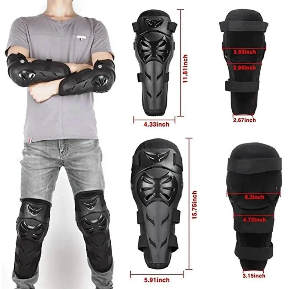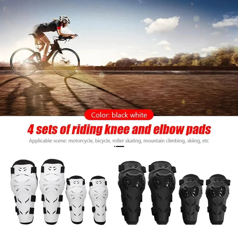 This four-piece set of motorcycle protective gear delivers essential safety for riders. The collection includes a pair of knee protectors and a pair of elbow protectors, ensuring comprehensive joint protection. Crafted with a robust new PE shell, these sports protectors offer superior impact resistance and durability. The ergonomic design provides movable, comfortable coverage, allowing for a full range of motion during motorcycle riding, motocross, and other active sports. Adjustable quick-release straps ensure a secure and customized fit for various body types. This high-quality protective equipment is a vital addition to any rider's safety arsenal, enhancing protection during dirt bike adventures, ATV excursions, and all forms of motorcycling.