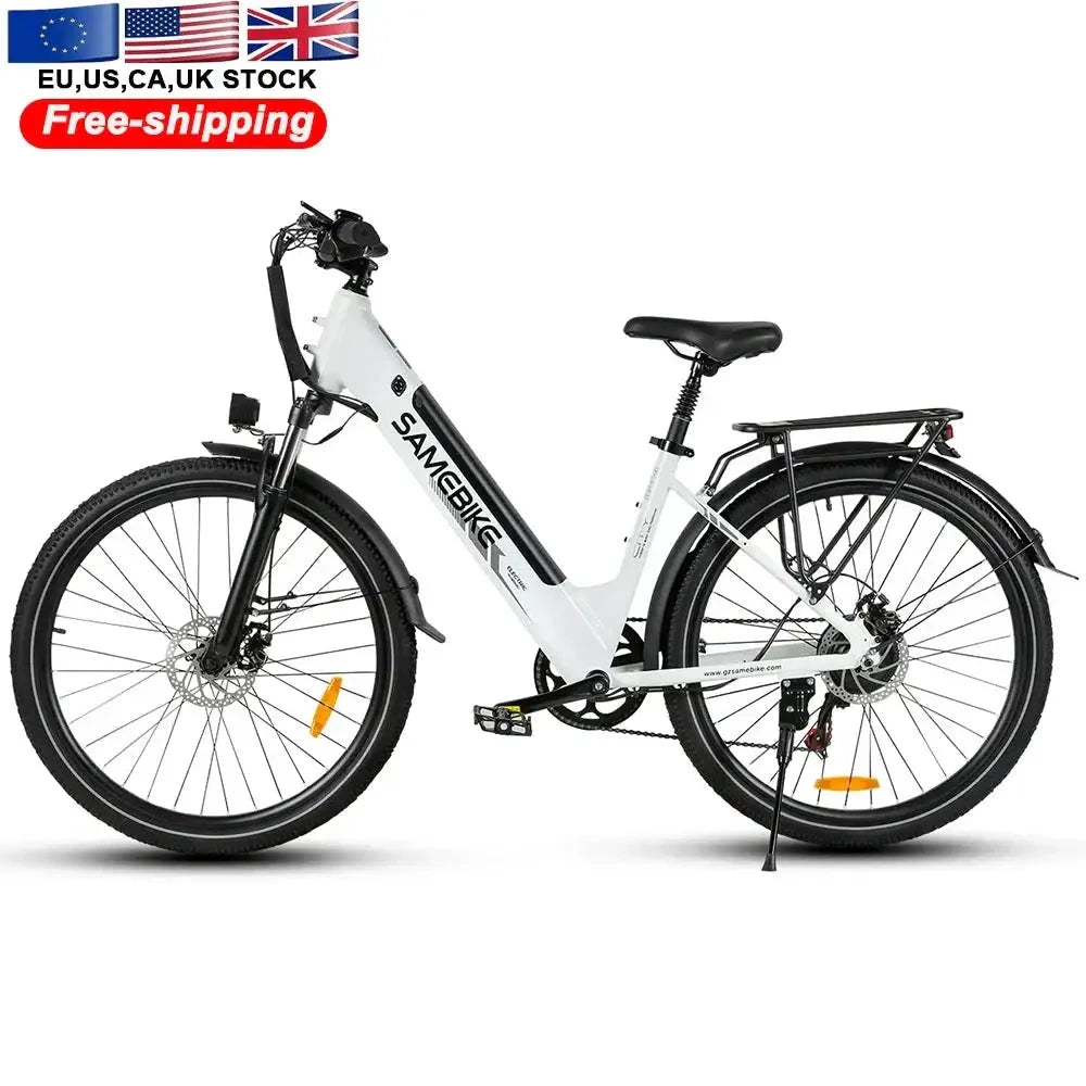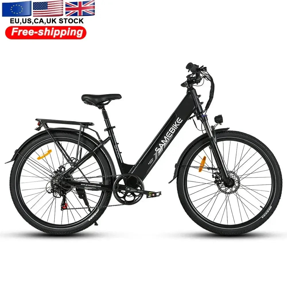 Ride in style with the SAMEBIKE RS-A01 PRO. This elegant city e-bike features a step-through aluminum alloy frame for easy access and comfort. Equipped with a 27.5-inch wheelset and a versatile motor system, it's perfect for daily errands and leisurely rides.
